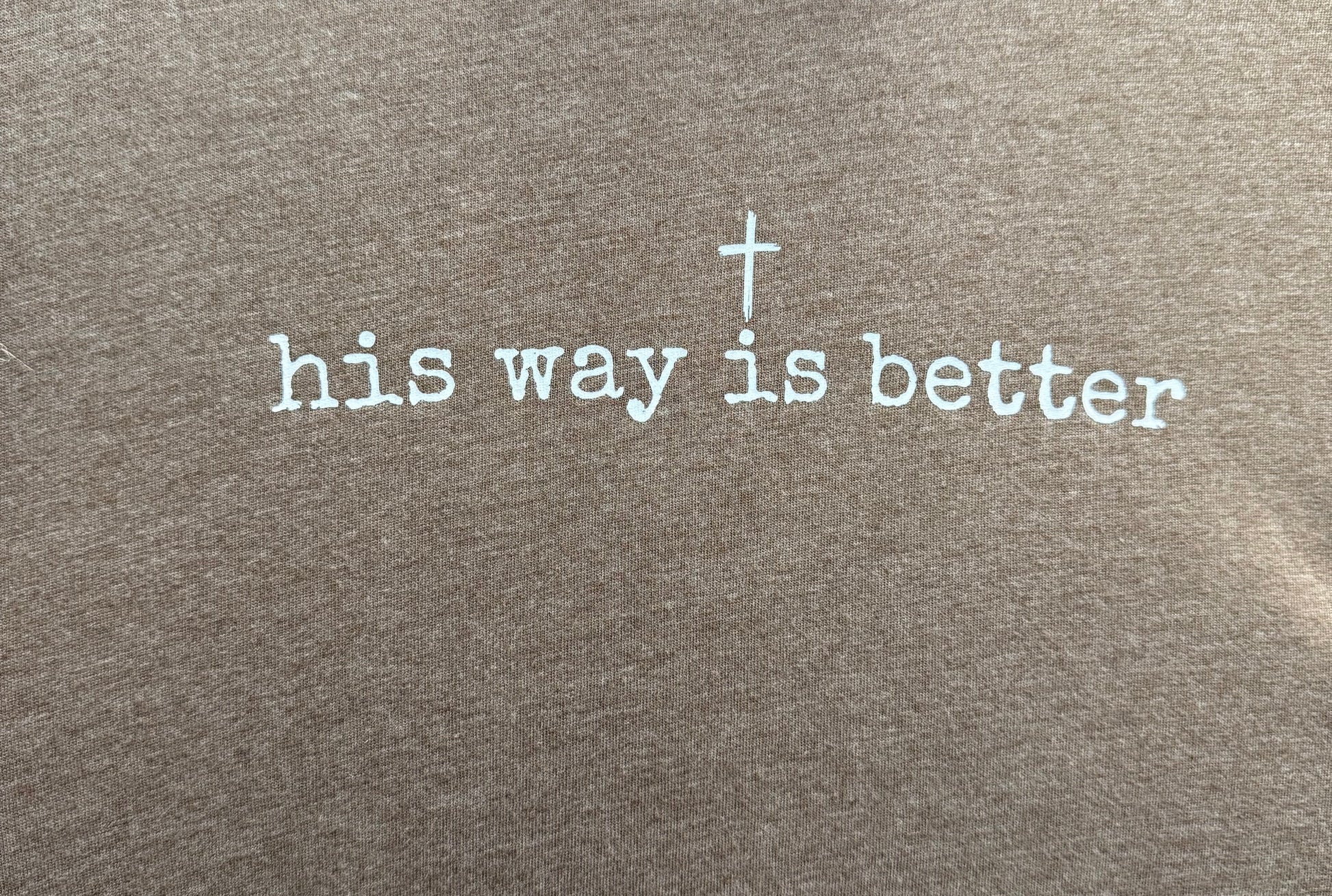 His Way is Better Tee Embrace faith with this meaningful graphic tee that celebrates trust and surrender. Designed for everyday wear, this comfortable cotton blend shirt features an inspiring message that reminds you to lean on what matters most.
