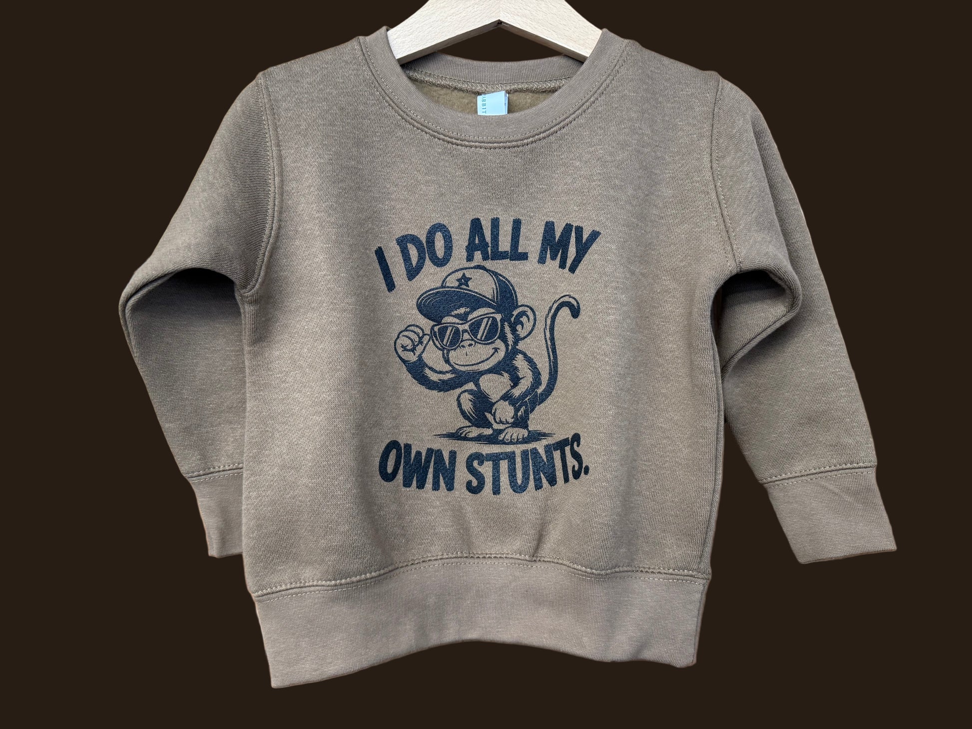 Unleash your inner daredevil with the Stunt Monkey Crewneck—where mischief meets comfort.